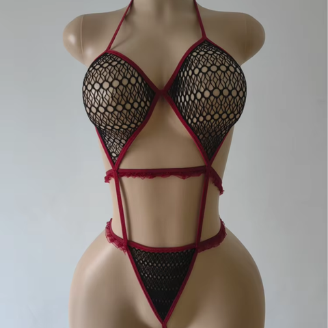 Encaje de lujo ahueca hacia fuera Fishnet de una pieza de malla Lencería Stripper Ropa para la venta